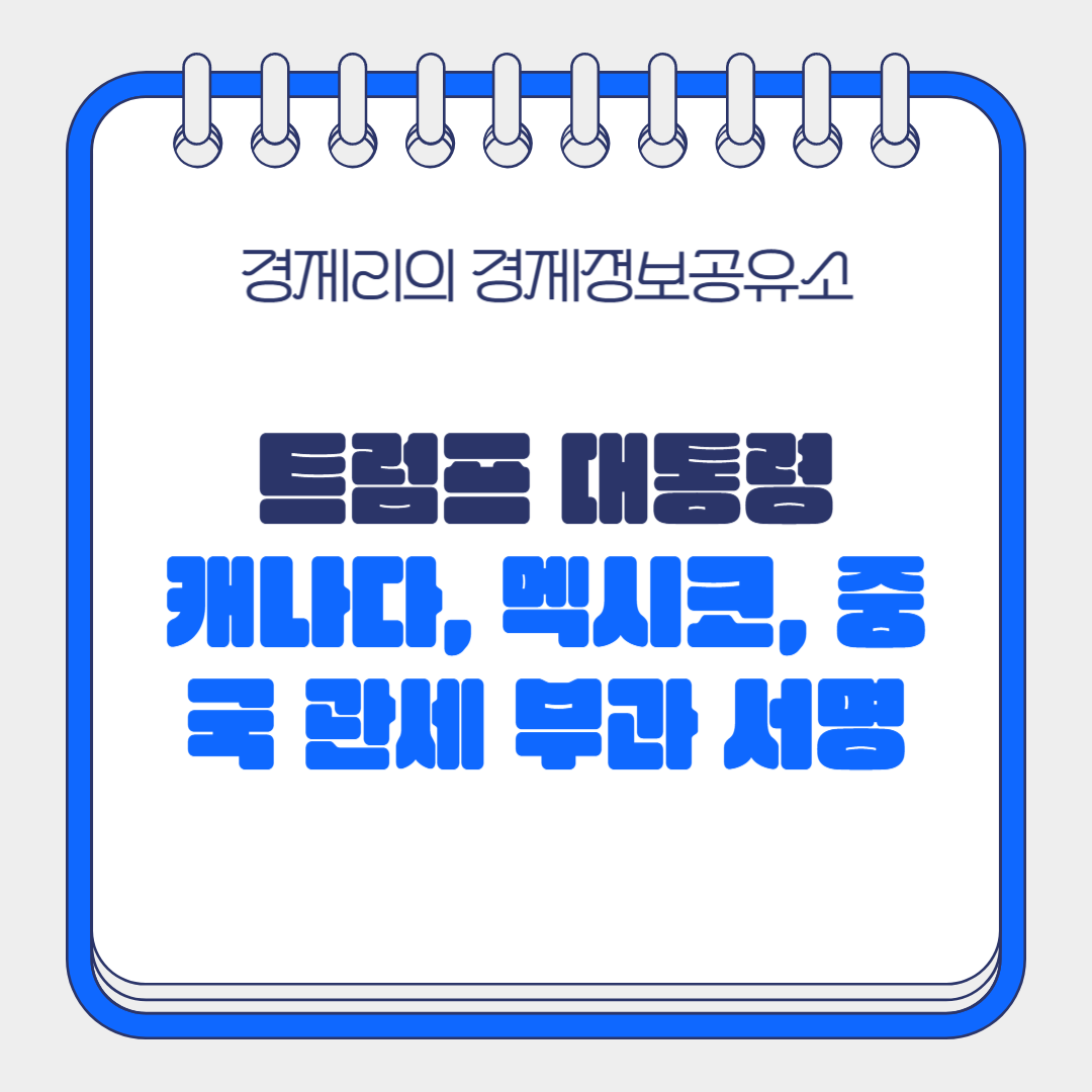 미국 트럼프 정부의 관세 관련 정책 움직임이 드디어 본격화 되기 시작했습니다. 캐나다·멕시코·중국을 향한 강력한 무역 제재 관련 행정명령에 서명을 했다는 소식입니다. 이와 관련해서 분석해보도록 하겠습니다.
