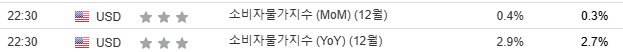 ⭐(별도설명 - 1월 15일 발표 예정) 전월 대비 미국 소비자물가지수 (CPI) / 노무라 전망치 ⭐