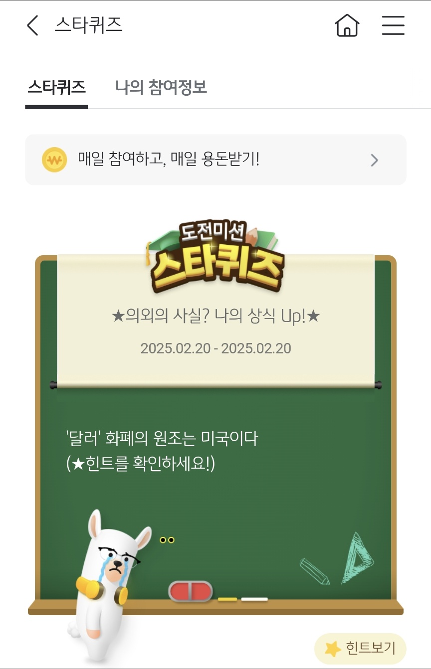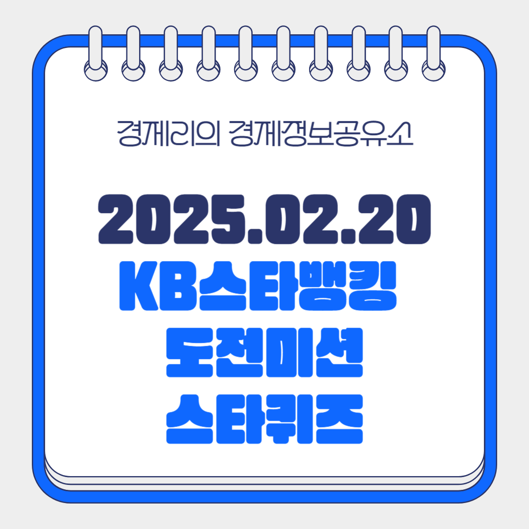 매주 월화수목금 퀴즈인 KB국민은행의 KB스타뱅킹 2025년 2월 20일 도전미션 스타퀴즈 정답을 공유드리고자 합니다. 바로 알려드리겠습니다.