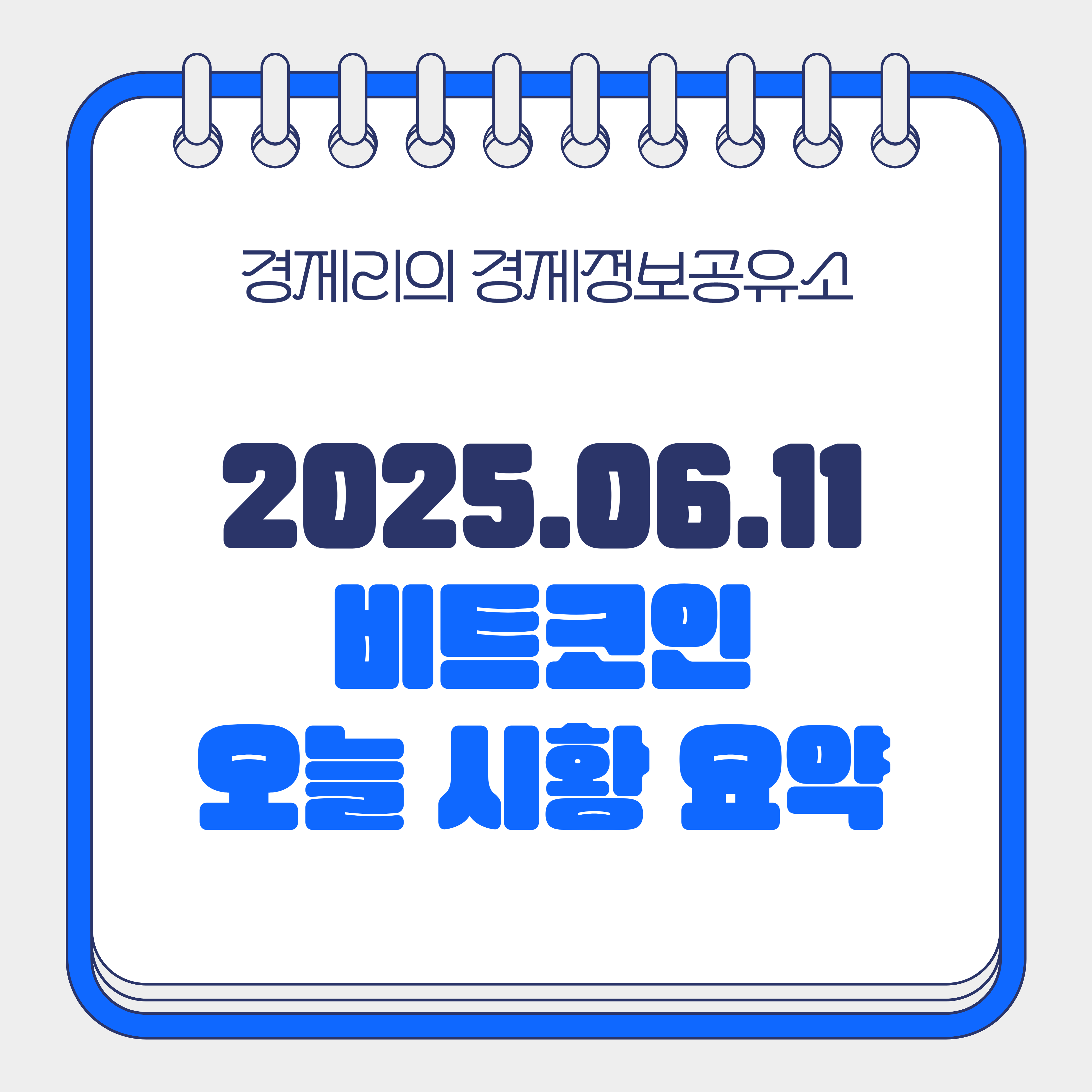 2025년 6월 11일 암호화폐 시장은 비트코인은 보합세, 이더리움은 지속적인 상승세를 보이며 투자자들의 관심이 집중되고 있습니다. 특히 기관 투자자들의 매수세가 유입되고 있지만, 그 중심은 비트코인보다는 이더리움과 알트코인에 더 가까워 보입니다.