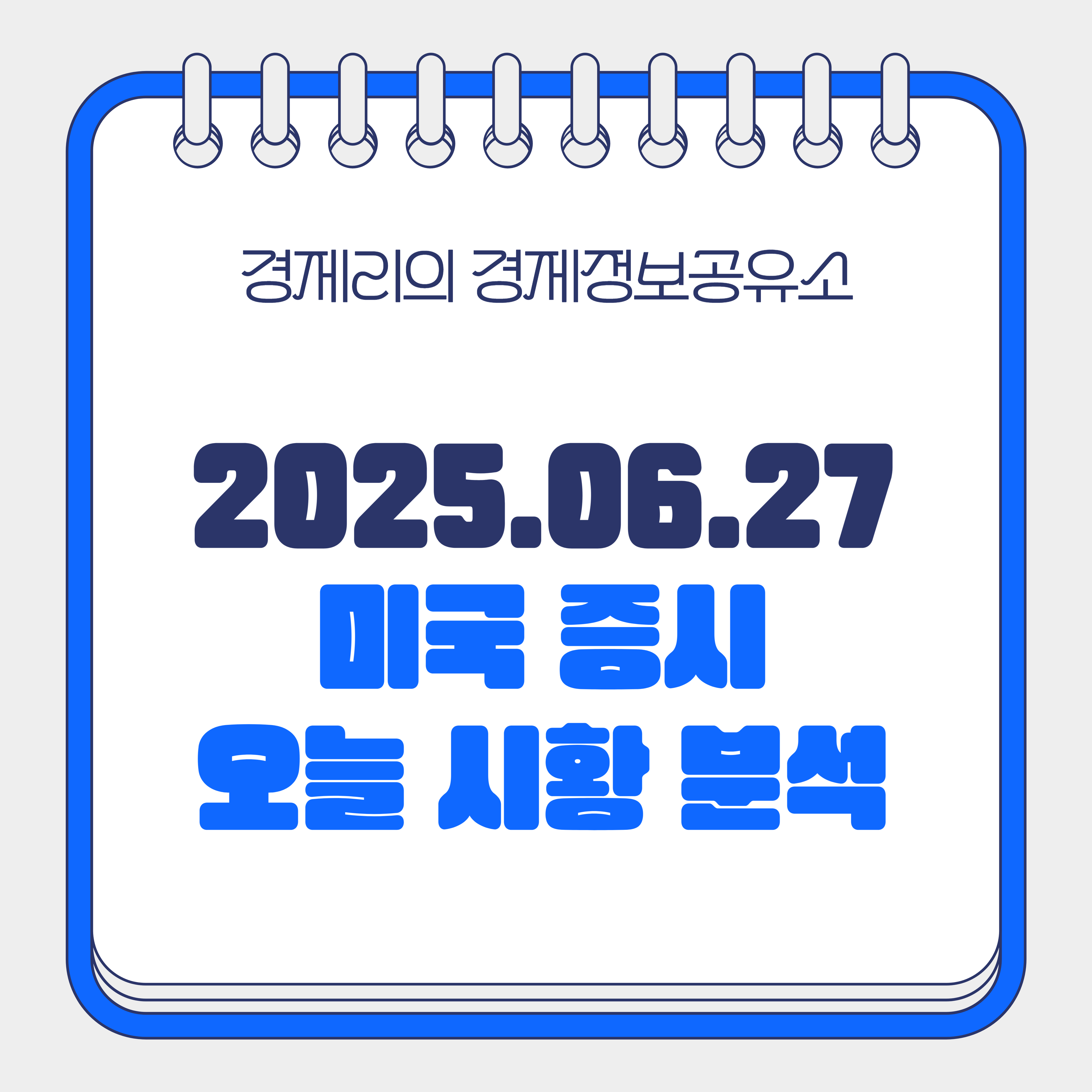 2025년 6월 27일 기준, 미국 증시는 금일 상승 마감하며 다시 한 번 사상 최고치에 근접하는 모습을 보였습니다. 투자자들은 최근의 지정학적 리스크와 경기 둔화 우려보다 연준의 금리 인하 기대감에 더욱 집중하면서 주식 시장은 전반적으로 긍정적인 흐름을 보였습니다.